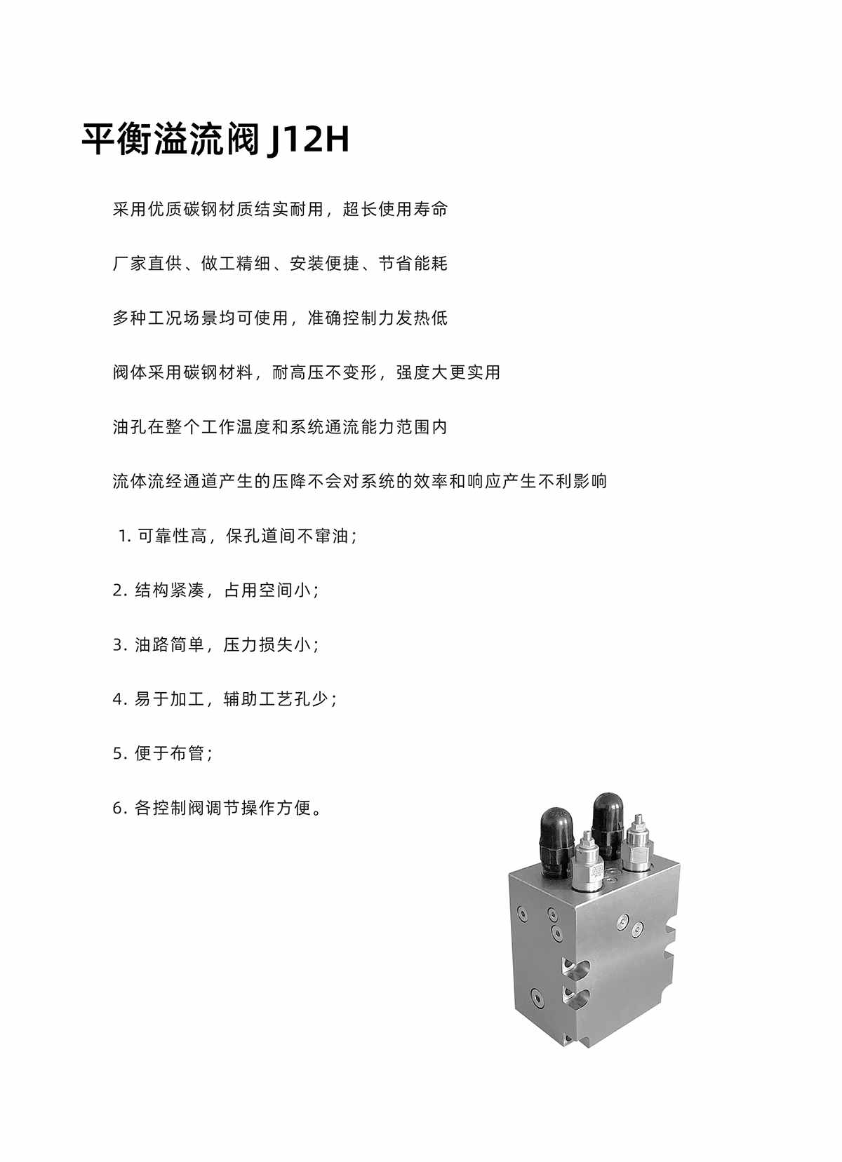 采用優(yōu)質碳鋼材質結實耐用,超長使用壽命;廠家直供、做工精細、安裝便捷、節(jié)省能耗;多種工況場景均可使用,準確控制力發(fā)熱低;閥體采用碳鋼材料,耐高壓不變形,強度大更實用;油孔在整個工作溫度和系統(tǒng)通流能力范圍內(nèi);流體流經(jīng)通道產(chǎn)生的壓降不會對系統(tǒng)的效率和響應產(chǎn)生不利影響; 可靠性高,??椎篱g不竄油;2. 結構緊湊,占用空間小;3. 油路簡單,壓力損失?。?. 易于加工,輔助工藝孔少;5. 便于布管;6. 各控制閥調節(jié)操作方便。