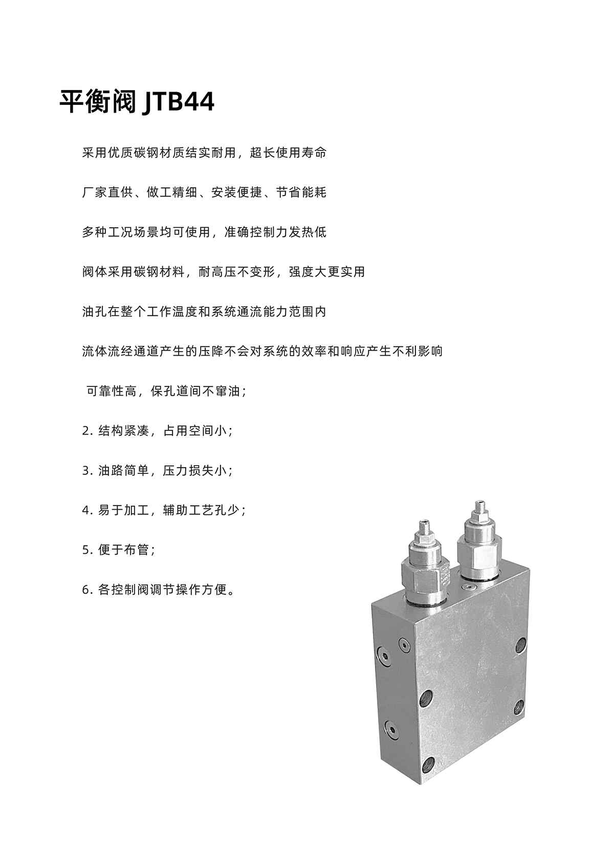 可靠性高,??椎篱g不竄油;2. 結(jié)構(gòu)緊湊,占用空間??;3. 油路簡(jiǎn)單,壓力損失??;4. 易于加工,輔助工藝孔少;5. 便于布管;6. 各控制閥調(diào)節(jié)操作方便。