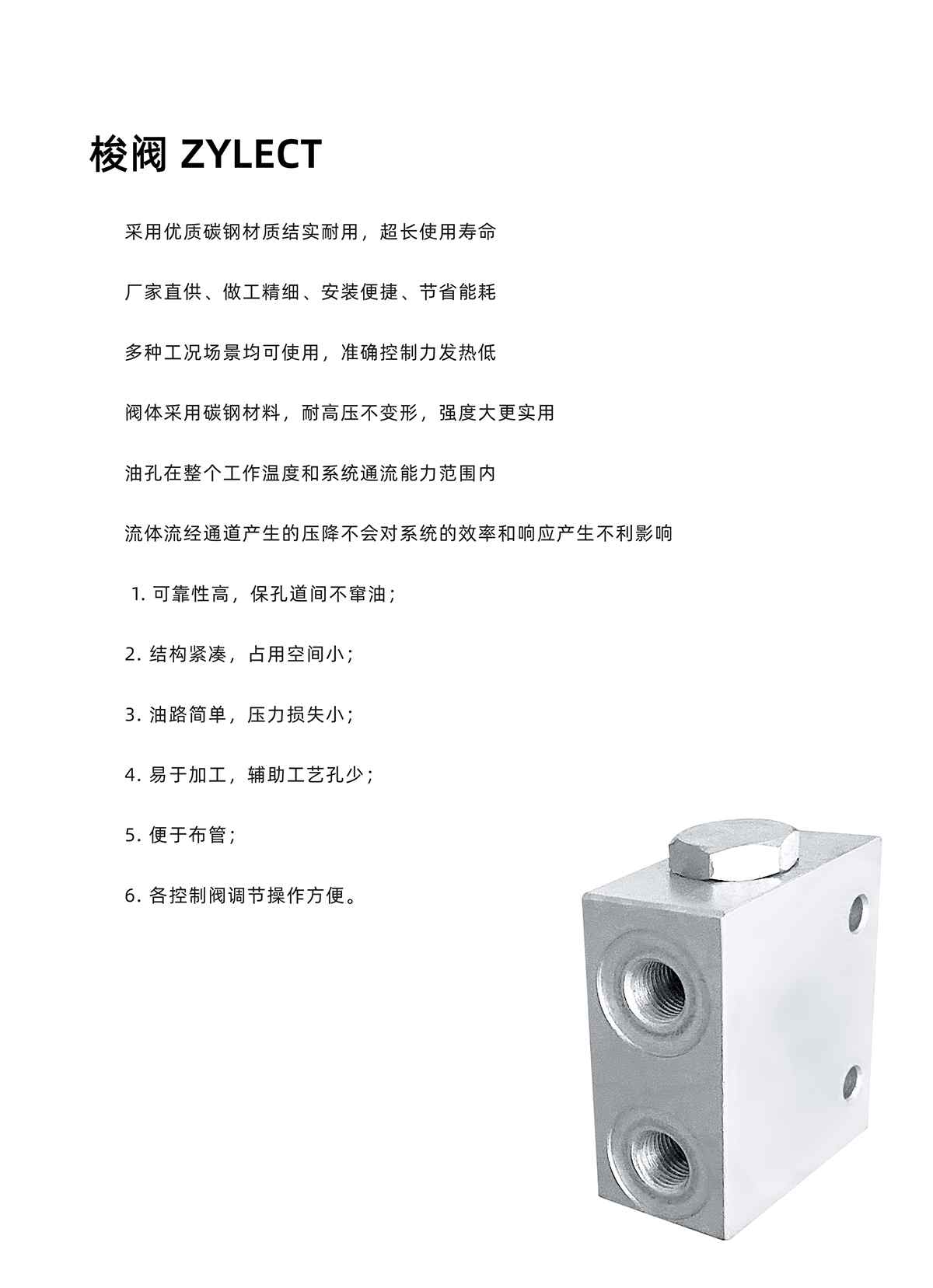 采用優(yōu)質(zhì)碳鋼材質(zhì)結(jié)實(shí)耐用,超長(zhǎng)使用壽命 廠家直供、做工精細(xì)、安裝便捷、節(jié)省能耗 多種工況場(chǎng)景均可使用,準(zhǔn)確控制力發(fā)熱低 閥體采用碳鋼材料,耐高壓不變形,強(qiáng)度大更實(shí)用 油孔在整個(gè)工作溫度和系統(tǒng)通流能力范圍內(nèi) 流體流經(jīng)通道產(chǎn)生的壓降不會(huì)對(duì)系統(tǒng)的效率和響應(yīng)產(chǎn)生不利影響 可靠性高,??椎篱g不竄油;2. 結(jié)構(gòu)緊湊,占用空間??;3. 油路簡(jiǎn)單,壓力損失小;4. 易于加工,輔助工藝孔少;5. 便于布管;6. 各控制閥調(diào)節(jié)操作方便。
