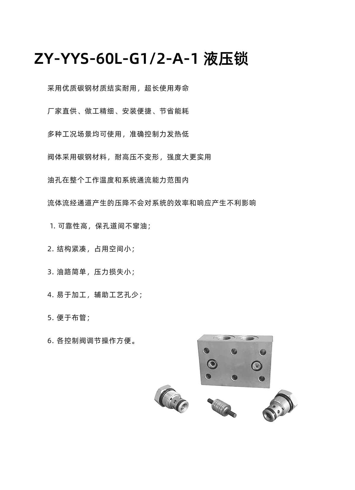 采用優(yōu)質(zhì)碳鋼材質(zhì)結(jié)實耐用,超長使用壽命 廠家直供、做工精細(xì)、安裝便捷、節(jié)省能耗 多種工況場景均可使用,準(zhǔn)確控制力發(fā)熱低 閥體采用碳鋼材料,耐高壓不變形,強度大更實用 油孔在整個工作溫度和系統(tǒng)通流能力范圍內(nèi) 流體流經(jīng)通道產(chǎn)生的壓降不會對系統(tǒng)的效率和響應(yīng)產(chǎn)生不利影響 可靠性高,??椎篱g不竄油;2. 結(jié)構(gòu)緊湊,占用空間??;3. 油路簡單,壓力損失小 4. 易于加工,輔助工藝孔少;5. 便于布管;6. 各控制閥調(diào)節(jié)操作方便。